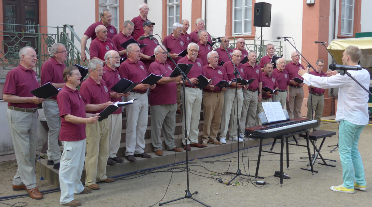 Die Männersänger beginnen mit "Nun will der Lenz uns grüßen" mit ihrem Dirigenten, Dirk Schneider, die Parkfest-Auftritte.
