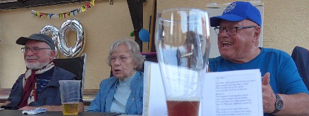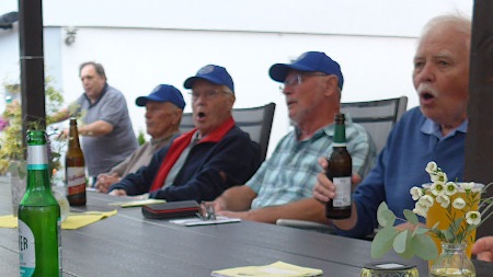 Nach einer Regenwoche war es heut wieder wärmer, jedoch kühlt es abends ab. Die Sänger verweilen gern im Gastgarten des ASV.