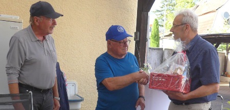 Carl-Joseph gratuliert Helmut mit einem Präsent der Männersänger.