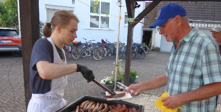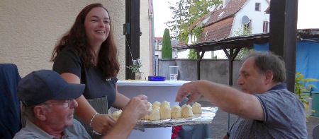 Manuela und Heike versorgen mit Getränken und hier mit "Eskomi-Köpfen".
