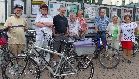 Start am KMGV-Schaukasten mit Winfried, Werner, Klaus, Günther, Manfred, Paul, Ruth und Erika.