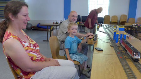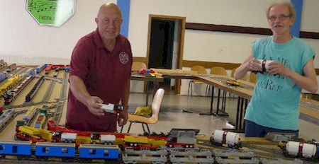 Bereits samstags war Lothar angereist und baute, mit Unterstützung von Heini, die LEGO-Eisenbahn in der Trainingshalle auf.