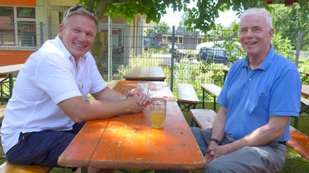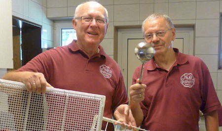 Wolfgang und Klaus erwarten die erste Lieferung von Geschirr zum spülen.