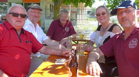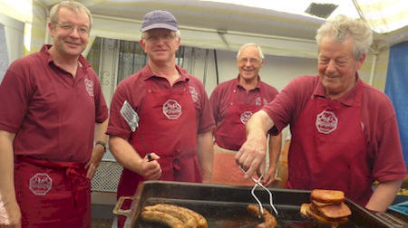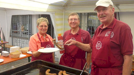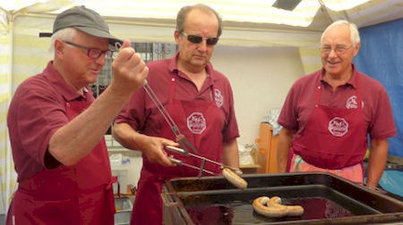 Schichtwechsel am Grillstand zu Heinz-Werner, Klaus und Manfred; während sich Wolfgang auf das Schichtende freut.