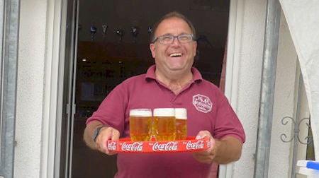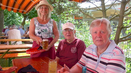 Auch Elisabeth versorgt die Gäste mit Getränken; hier ein Bier für Addi.
