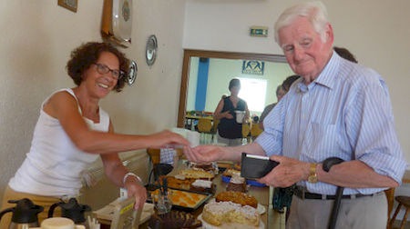 Hinter der Theke verkauft Marianne Kuchen und Kaffee.