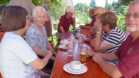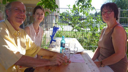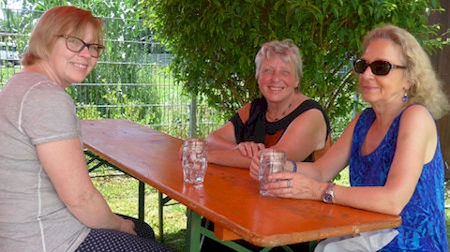 Anette, Elisabeth und Britta an schattigem Platz beim Plausch.