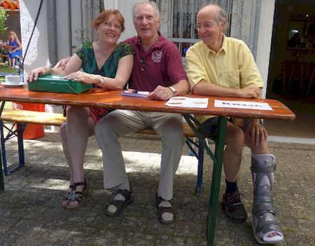 Angelika und Gerhard sind an der Kasse und überraschenderweise kam Bernhard, unser Kassenwart erstmals nach seinem Sportunfall wieder zu den Sängern.