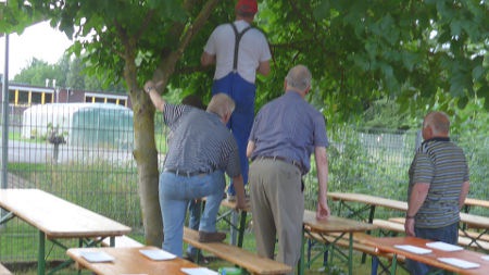 Samstags um 9:00 Uhr werden die Festzeltgarnituren aufgebaut...