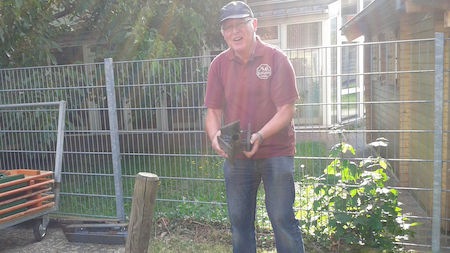 Manfred kürzt das überschwere Starkstromkabel auf tragbare Länge.