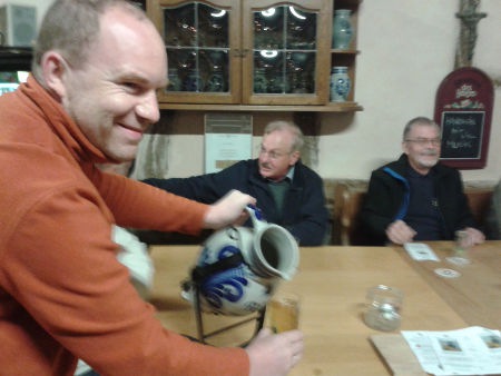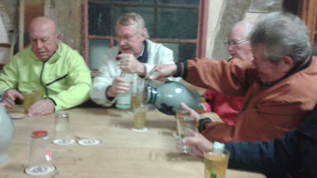 Der Apfelwein schmeckt vorzüglich; Manfred schenkt schon wieder nach.