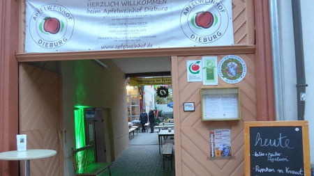 Das Tor zum Apfelweinhof ist einladend geöffnet.