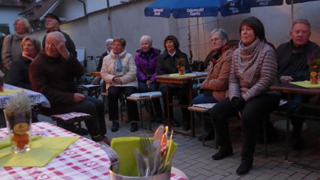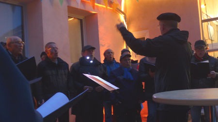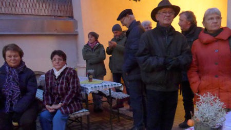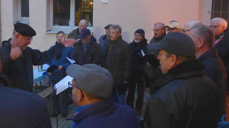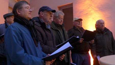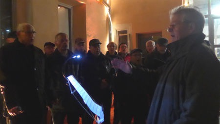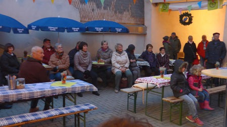 Bereits am Anfang Oktober haben die Männersänger den Apfelweinhof besucht, um den Hof für einen Auftritt kennen zu lernen. Nun trafen sich die Männersänger zum Martinsmarkt bei sinkender Dämmerung und sinkenden Temperaturen zum Singen im Apfelweinhof.
