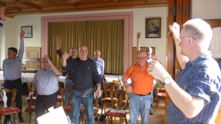 Heinz-Werner bedankt sich bei Allen und wünscht Gute Heimreise. Die meisten Sänger bleiben noch zum gemeinsamen Mittagessen. Das Chorwochenende hat das Liedgut für das geplante Weihnachtskonzert erfolgreich auf den Weg gebracht.
