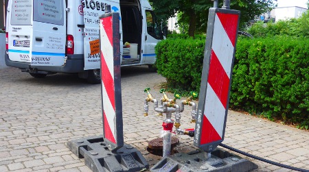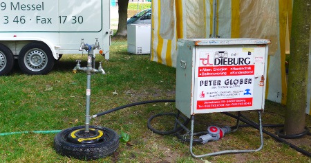 Die Wasserversorgung zum Zelt für Kaffeeküche und Spüle wird gelegt.