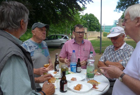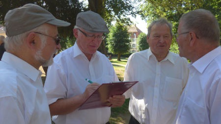 Die Sänger, Paul, Klaus, Hermann und Lothar, warten gelassen auf ihren Auftritt.