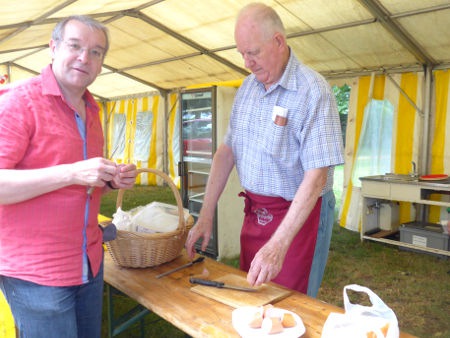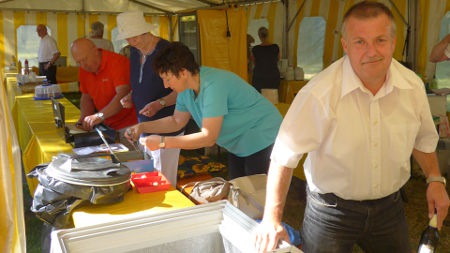 Heinz, im KMGV-T-Shirt, ist Helfer an der Kuchentheke.