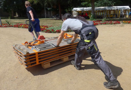 Ruck-zuck langen die Tisch-und-Bank-Pakete am Zielort an.