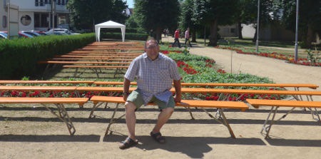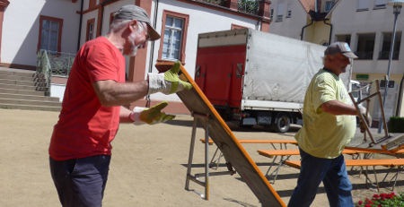 Die Ankunft des Transporters mit Tischen und Bänken verzögert sich ....