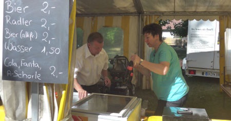 Sonntag morgen - die Verkaufstheke für Getränke wird hergerichtet.