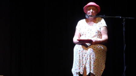 Als Märchenerzählerin verliest Elisabeth Förster "Es war einmal" aus Rotkäppchen...