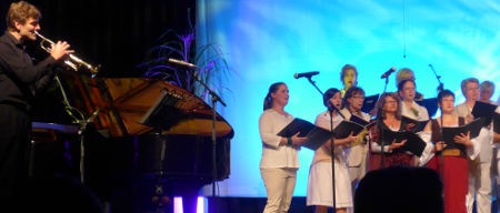Hagen Pätzold begleitet mit der Trompete die Sängerinnen bei der "Barcarole" aus Hoffmanns Erzählungen.