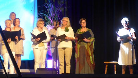 Edith Zulauf, Chorsprecherin des Frauenchors, bedankt sich bei den Märchenkindern und leitet über zum Auftritt der Sängerinnen von chorfavor.