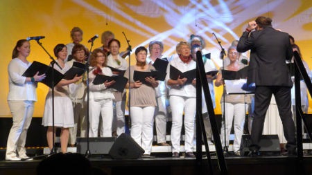 Zum Abschluss präsentiert chorfavor das romantische "Ich weiß nicht, was soll es bedeuten" zusammen mit einem MännerSänger-Ensemble, Trompete und Klavier. Das Publikum dankt den Akteuren, wozu auch der Projektkinderchor zählte, mit großem Applaus.
