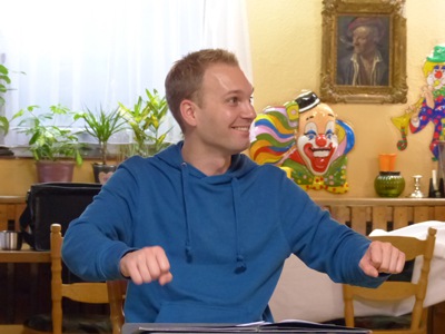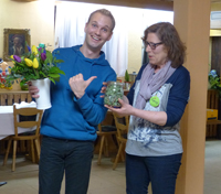 Am Ende des anstrengenden Chortages, der uns deutlich weiter gebracht hat, übergab Edith ein kleines Dankeschön an Dirk.