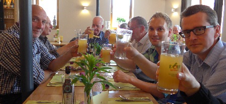 Zum Mittagessen gab es eine Auswahl aus 3 Menüs, darunter eines vegetarischer Art. Es gelang Dirk sein "Alkoholverbot" durchzusetzen. Den Männern schmeckte Apfelschorle, Wasser, Cola & Co.
