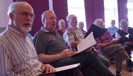 Im ersten Tenor singen sich Helmut, Peter, Paul, Manfred und Gerd ein.