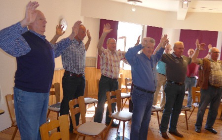 Am Sonntag begann das Einturnen mit Einsingen um 10:00 Uhr. Die noch Werktätigen, wie Frank, Peter und Rainer hatten sich hierzu noch eingefunden.
