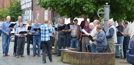 Die Männersänger sangen zum Dank und Abschied das "Am Brunnen vor dem Tore". Insgesamt 11 Vollzeitstunden Chorprobe, das entspricht rund eineinhalb bis zwei Monate normale Chorproben wurden absolviert und das Repertoire damit nachhaltig und sicher eingeprobt. Mit der erlangten Text- und Melodiesicherheit kann der Abend mit dem Volksliederkonzert kommen, wir freuen uns darauf! Vielen Dank an Dirigent, Dirk Schneider, und alle Beitragende zum gelingen des Konzerts!