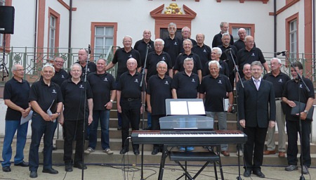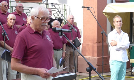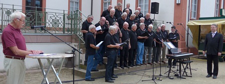Die Männersänger beginnen mit "Nun will der Lenz uns grüßen" mit ihrem Dirigenten, Dirk Schneider, die Parkfest-Auftritte.