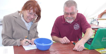 Angelika und Gundolf machen das Markieren von Speisen und Kassieren sichtlich Spaß.