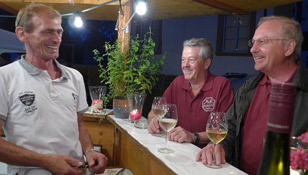 Hier sind Heinz-Werner, Carl-Josef und Seppl am grillen, Iris und Heinz bedienen die Gäste.