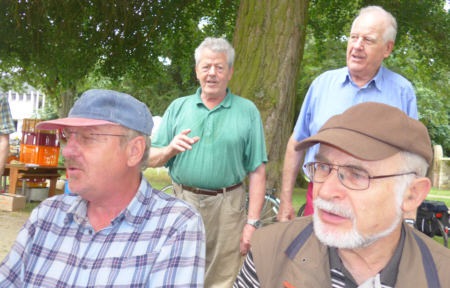 Helmut hat das Frühstück vorbereitet; Frank, Manfred und Werner geniessen es.
