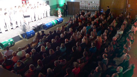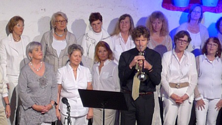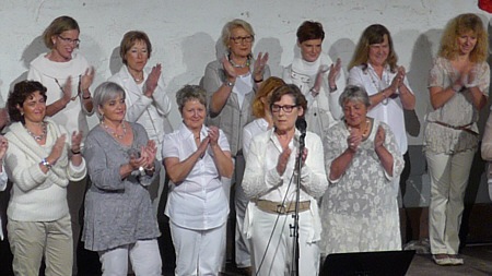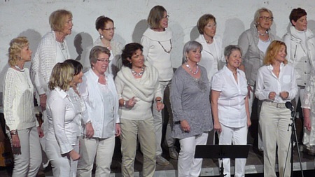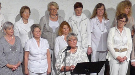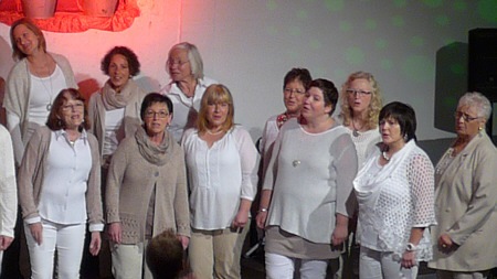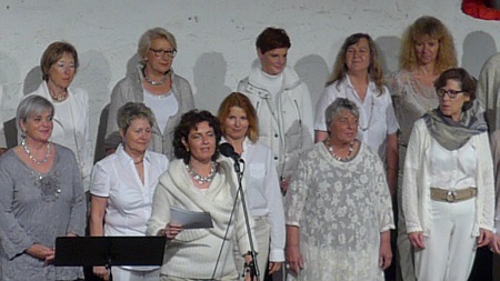 Die Sängerinnen treten nun in weiß auf, Antje kündigt die nächsten Liedstücke an.