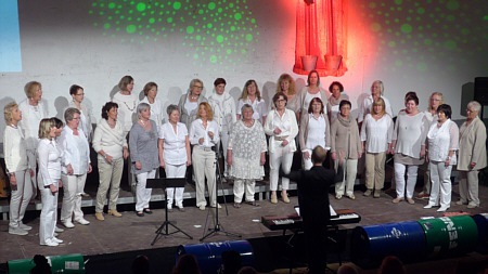 Die Sängerinnen starten ihr Jubiläumskonzert unter der Leitung von Dirk Schneider mit: For the longest time.