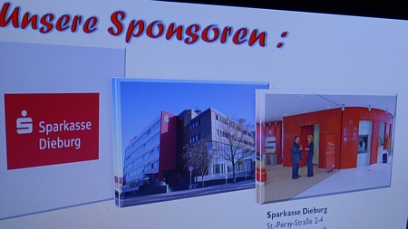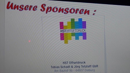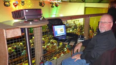 Peter bedient den Beamer, als erstes kommt das chorfavor-Logo aus der Konzertwerbung.