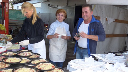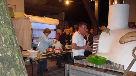 Pizzateig wird bereits belegt und Jens feuert den mobilen Pizzaofen an.