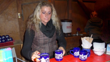Kerstin versorgt mit Getränken, darunter auch Glühwein.