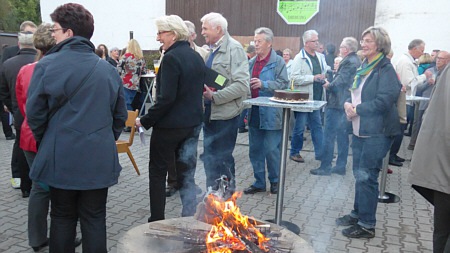Akteure und Gäste verweilen noch auf dem Reiterhofgelände auf ein Getränk und Pizza.