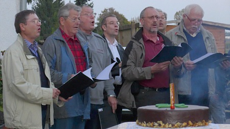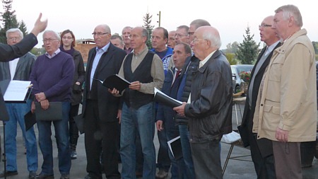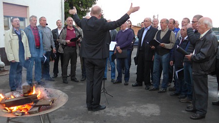 Die Männersänger bereiten sich auf ein Gesangsständchen mit ihrem neuen Dirigenten, Andreas Mohrhard, vor.