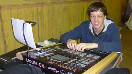 Schliesslich nehmen die Zuhörer in der Halle Platz. An der Beleuchtungssteuerung ist Tim.