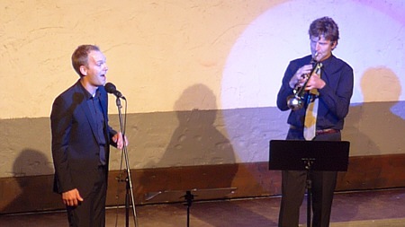 Dirk Schneider singt "Summertime" und Hagen Pätzold begleitet mit Trompete.