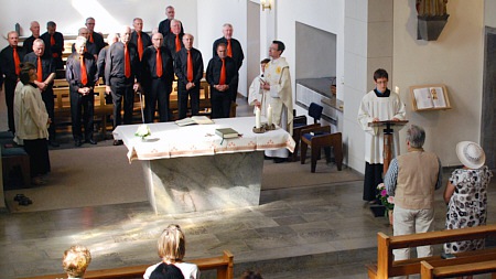 Die Männersänger umrahmten gesanglich den Dankgottesdienst unter Leitung von Vizedirigent, Helmut Blüm, mit: - Zum Gloria aus der Deutschen Messe - Herr, Deine Güte - Zum Sanctus aus der Deutschen Messe - Ave Maria