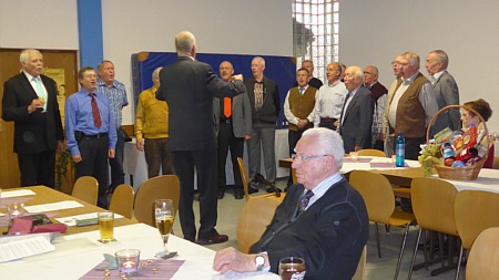 Franz begrüßt die Jubilare, Gäste und Sänger/innen.