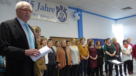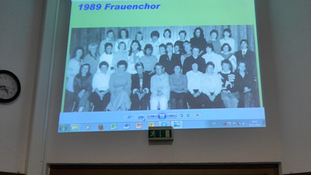 Franz erklärt wie es zur Gründung des nunmehr 25-jährigen Frauenchors kam und erläutert Etappen im Werdegang des Chors.