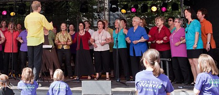 Beim Matineesingen von Frauen- und Männerchor beim Maimarkt 2011 werden erste Songs des angekündigten Jubiläumskonzerts von Dirk Schneider präsentiert.
